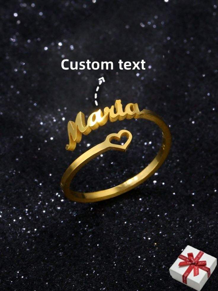 Included: 1x Custom Name Ring with Heart Accent in a gift box.