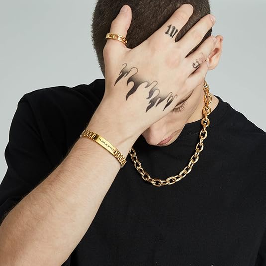 MATERIAL – Stainless steel with silver or gold-plated finish, featuring a custom name plate.