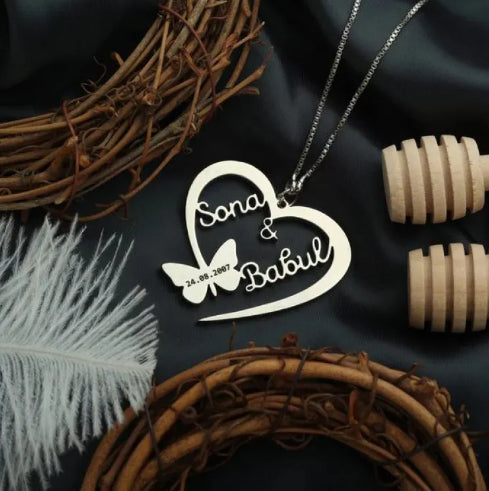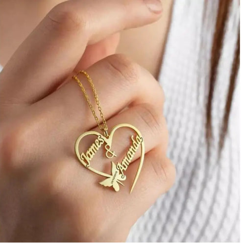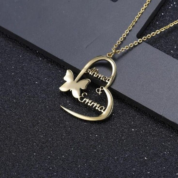 Included: 1x Custom Name Necklace with heart and butterfly design in a beautiful gift box.