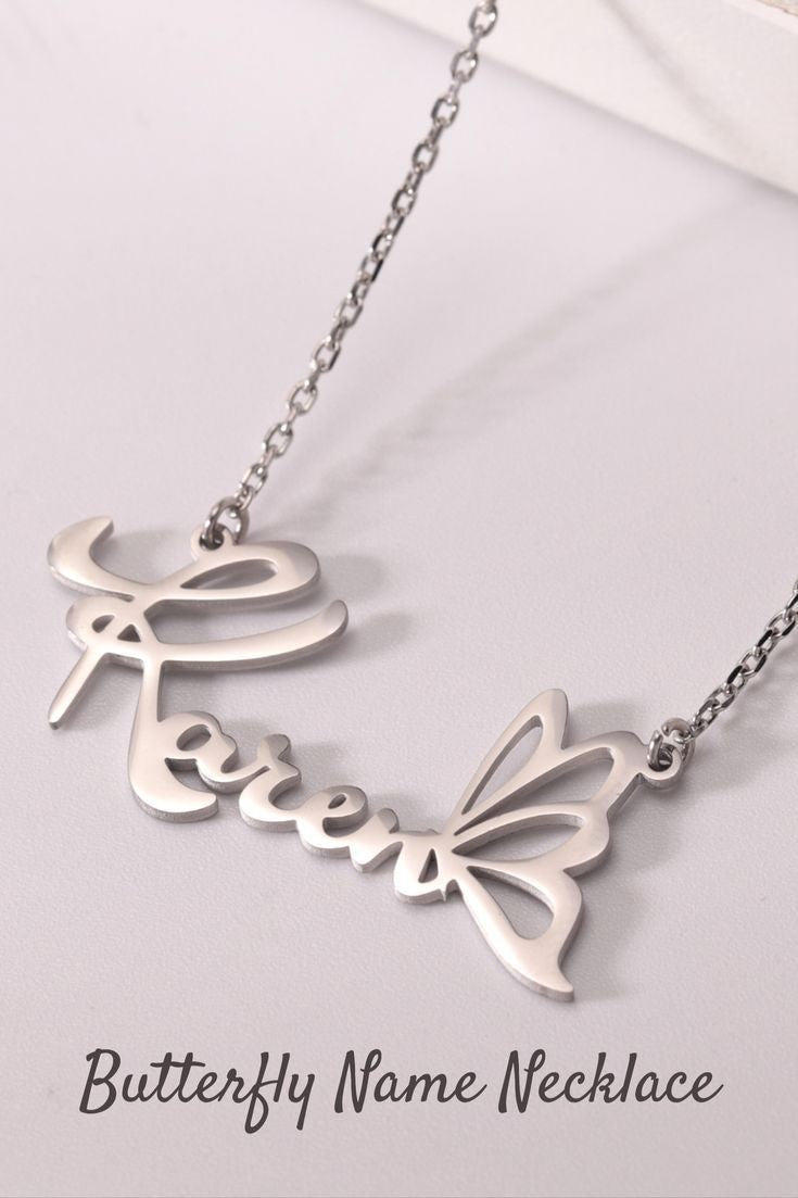 Name with Butterfly Necklace
